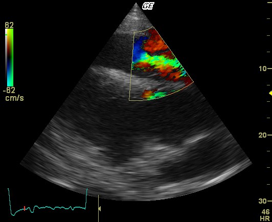 During a thorough echocardiographic examination standard image planes are obtained to measure cardiac dimensions as well as the motion of the ventricular wall and the valves. With the help of color flow Doppler echocardiography the intracardiac blood flow can be demonstrated and its velocity measured. Depending on the direction of the blood flow towards or away from the transducer different colors will appear on the monitor.