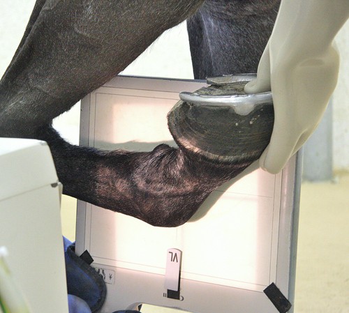 A standard radiological examination contains 18 radiographs – oxspring view, foot and fetlock lateral of both front feet, fetlock of both hind feet, as well as 3 images of each hock joint and 2 images of each stifle. Very often additional radiographs of the spinal processes, the neck or other angles of the limbs are ordered.